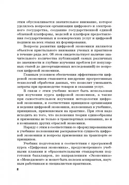 В учебнике раскрыта сущность цифровой экономики, рассматривается совокупность взаимосвязанных понятий, принципов, методов и методик, нормативно-правового регулирования, охватывающих различные аспекты практики управления в современных условиях, как на уровне предоставления государственных услуг и сервисов, так и на уровне управления электронным бизнесом. Излагаются основные положения по характеристике цифрового государства, построения цифрового профиля гражданина и организации, необходимых для развития единой цифровой государственной облачной платформы и платформ предоставления государственных и коммерческих услуг организаций, а также вопросы информационной безопасности с учетом результатов рыночных преобразований на транспорте, а также с целью разработки методики использования цифровых технологий. Включен практический материал. Настоящий учебник соответствует требованиям, изложенным в Федеральном образовательном стандарте высшего профессионального образования последнего поколения. Для студентов высших учебных заведений обучающихся по направлениям «Экономика» и «Менеджмент».