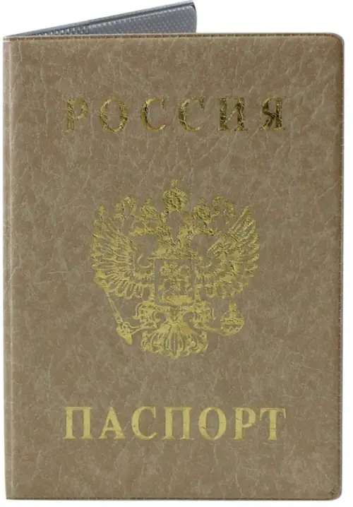 Обложка для паспорта "Паспорт России". Вертикальная Изготовлено из ПВХ. Цвет: бежевый. Сделано в России.