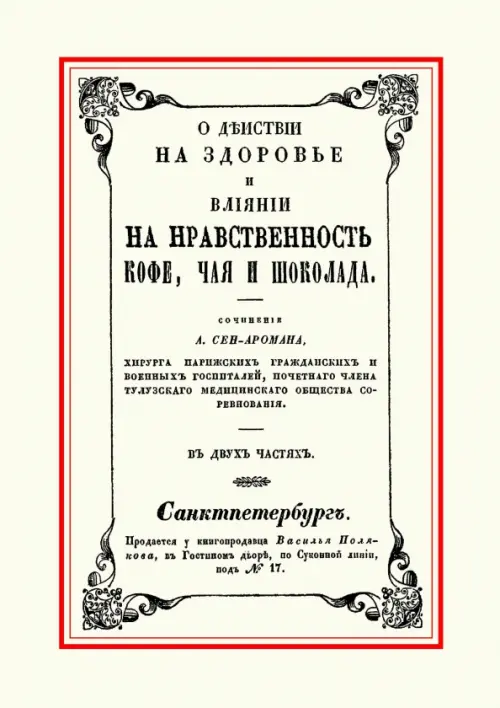 Если вы обнаружили ошибку в описании товара «О действии на здоровье и влиянии на нравственность кофе, чая и шоколада» (авторы: Сен-Ароман А.), то выделите её мышкой и нажмите Ctrl+Enter. Спасибо, что помогаете нам стать лучше!