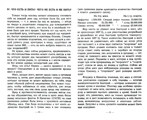 Содержание: I. Основы питания, II. Витамины, III. Пища нормальная, живая, здоровая, вкусная, сытная, быстрая в приготовлении и дешевая, IV. Что есть и пить? Чего не есть и не пить?, V. В каком порядке и когда что есть? Всегда ли пища "подкрепляет"?, VI. Нашим хозяйкам, VII. Состав пищи и машина пищеварения у человека. Как лечить болезни пищеварения? Эта поваренная диетическая книга для здоровых и больных состоит из 3-х частей и содержит рецепты, которые были почерпнуты из обширной врачебной санаторной практики. В первой части книги объясняется значение правильного питания и дается определение его понятия, указывается, чем разнятся питательные вещества от пиши вообще, какие пищевые вещества животного и растительного происхождения мы употребляем, какие искусственные питательные вещества и какие вкусовые, наконец, приводится нормальная диета для здоровых людей и несколько основных правил для кухни; во второй части имеется 573 поваренных прописей и рецептов различных блюд; в третьей части довольно подробно излагается диета при различных болезнях и состояниях. Все это делает эту книгу весьма ценной не только для врачей, диетических и лечебных учреждений, но и для завхозов, поваров и отдельных хозяек; книга эта принесет пользу в каждом доме. " Тираж 30 экз. выполнен по технологии print-on-demand.