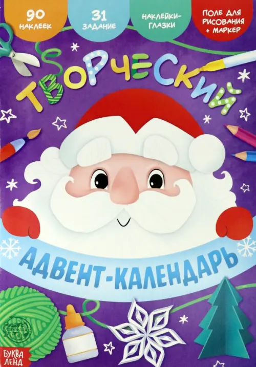С первой упавшей снежинкой начинается томительное ожидание Нового года. Ведь это самый волшебный праздник! Творческий адвент-календарь не только скрасит ожидание праздника, но и поможет крохе с пользой провести время. Внутри вас ждут новогодние аппликации и поделки, направленные на развитие мелкой моторики. А творческие задания развивают воображение. ВНУТРИ ВЫ НАЙДЁТЕ: - 31 творческое задание - календарь ожидания - поле для рисования и маркер - письмо для Деда Мороза - наклейки и глазки для заданий и поделок.