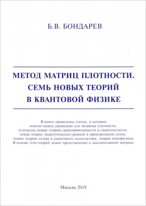 Если вы обнаружили ошибку в описании товара «Метод матриц плотности. Семь новых теорий в квантовой физике» (авторы: Бондарев Борис Владимирович), то выделите её мышкой и нажмите Ctrl+Enter. Спасибо, что помогаете нам стать лучше!