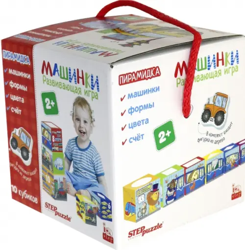 Развивающая игра-пирамидка. Машинки, 10 кубиков