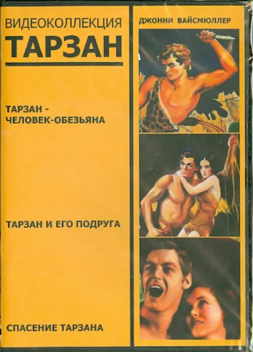 Знаменитая видеоколлекция приключенческих фильмов о Тарзане - белом человеке, живущем в джунглях Африки, его подруге Джейн и обезьянке Чите, созданная по произведениям Эдгара Райса Берроуза. Фильмы, созданные в Голливуде в 30-х годах ХХ-го века, поражают уникальными съёмками диких животных, мастерством спецэффектов. Джонни Вайсмюллер в роли Тарзана стал одним из незабываемых символов ХХ-го века, а его приключения - любимыми фильмами для нескольких поколений поклонников зрелищного приключенческого кино. Фильмы отреставрированы. Уникальное качество изображения и звука. ТАРЗАН - ЧЕЛОВЕК-ОБЕЗЬЯНА (Tarzan the Ape Man) В ролях: Джонни Вайсмюллер, Морин О'Салливан, Нил Хэмилтон, С. О. Смит, обезьянка Чита. Продюсер И. Тальберг. Сценарий: С. Хьюм. Режиссер В. С. Ван Дайк. Оператор К. Де Винна. Продолжительность: 99 минут. Черно-белый. ТАРЗАН И ЕГО ПОДРУГА (Tarzan and His Mate) В ролях: Джонни Вайсмюллер, Морин О'Салливан, Н. Хэмилтон, обезьянка Чита. Продюсер: И. Тальберг. Сценарий: Дж. К. МакГиннес. Режиссер: С. Гиббонс. Операторы К. Де Винна, С. Дж. Кларк. Продолжительность: 99 минут. Черно-белый. СПАСЕНИЕ ТАРЗАНА (Tarzan Escapes) В ролях: Джонни Вайсмюллер, Морин О'Салливан, У. Генри, Г. Мандин, обезьянка Чита. Сценарий: С. Хьюм. Режиссёр Р. Торп. Продолжительность: 99 минут. Черно-белый. США, 1932-1936 гг. , киностудия Metro Goldwyn Mayer. 3 DVD Общая продолжительность: 297 мин. Формат изображения: 4:3 Звук: DOLBY DIGITAL 2.0 Язык: русский, английский, французский, итальянский, испанский. Субтитры: английские. Региональный код: All Для зрителей старше 12-ти лет.