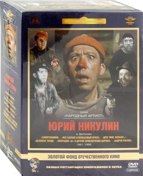 Никулин Юрий. 5 дисков Состав: Самогонщики Пес Барбос и необычный кросс Друг мой, Колька!. . Деловые люди Операция "Ы" и другие приключения Шурика Андрей Рублев. Полная реставрация изображения и звука.