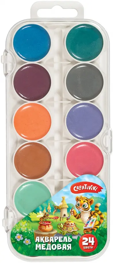 Живопись помогает малышам научиться творчески осмысливать окружающий мир и приобретать собственное восприятие реальности - по-своему видеть предметы и явления. Рисование стимулирует развитие ассоциативного мышления, навыки проецирования предметов на лист бумаги. С первых живописных работ ребёнка рисование закладывает фундамент к дальнейшему пониманию целого ряда школьных дисциплин. Рисование дарит малышу море положительных эмоций, что является, пожалуй, основным аргументом для приобщения ребёнка к этому процессу. Для рисунков, полных эмоций и впечатлений, отлично подойдёт акварель Creativiki® - яркие краски хорошо смешиваются и прекрасно ложатся, а также обладают безопасным составом. Акварель выполнена в облегченной упаковке и в классическом пластиковом корпусе, её удобно брать с собой на занятия в школу и детский сад! Яркие, сочные цвета будут долго радовать ребенка благодаря уникальным свойствам медовой акварели: достаточно разбавить подсохшие краски водой и ими снова можно рисовать! В наборе 24 цвета. Кисть в набор не входит. Сделано в Республике Беларусь.