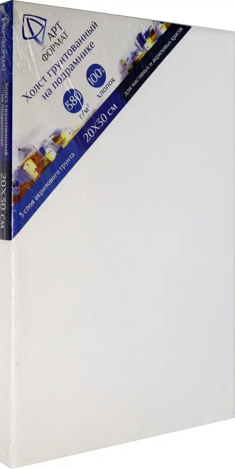 В ассортименте художественных товаров "АРТформат" появилась линия грунтованных художественных холстов на деревянных подрамниках. - Состав холста - 100% хлопок - Покрытие - 3 слоя универсального акрилового белого грунта - Плотность холста - 380 г/м - Фактура - среднее зерно - Комплект деревянных клиньев для коррекции натяжения. Линия предназначена для живописи масляными и акриловыми красками. Хлопковые холсты, натянутые на деревянные подрамники - это удобное и экономичное решение для начинающих художников, потому что процесс натяжения вручную требует опыта, навыков и времени. Такая основа для рисования является одним из самых базовых и востребованных материалов в живописи. Фактура холста средней зернистости - "золотая середина", удобная для любой манеры живописи как с гладким глянцевым красочным покрытием, так и с сохранением объемных рельефных мазков. Художественные товары АРТформат ориентированы на новичков в живописи и разрабатываются с учетом потребности таких покупателей в большом количестве качественных и при этом недорогих расходных материалов для обучения и оттачивания мастерства. Сделано в Китае.