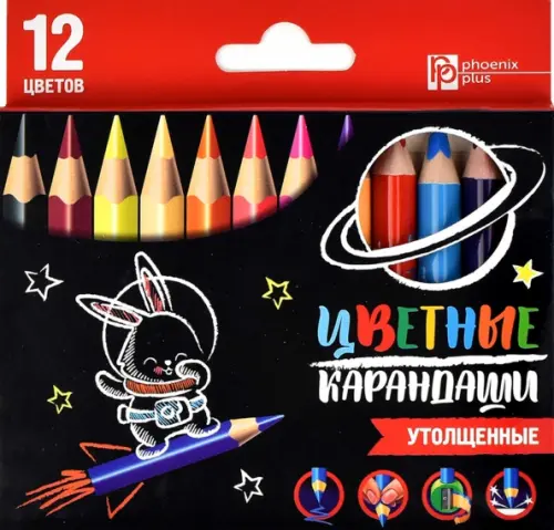 Набор цветных утолщенных карандашей. Зайка-космонавт, 12 цветов