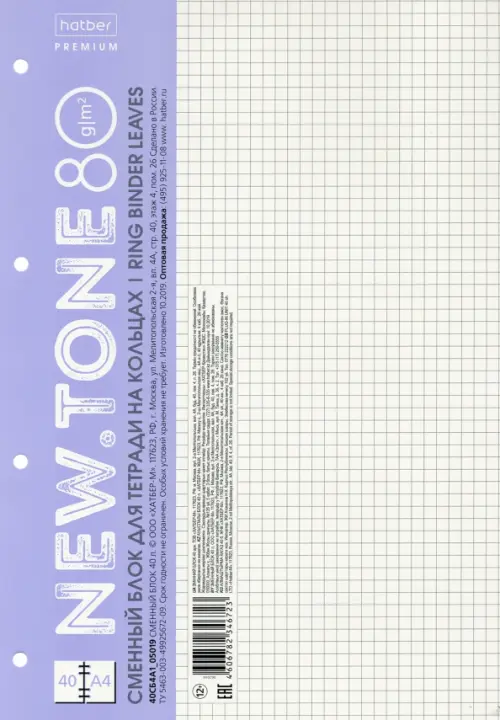 Блок сменный для тетрадей на кольцах. Лаванда, А4, 40 листов