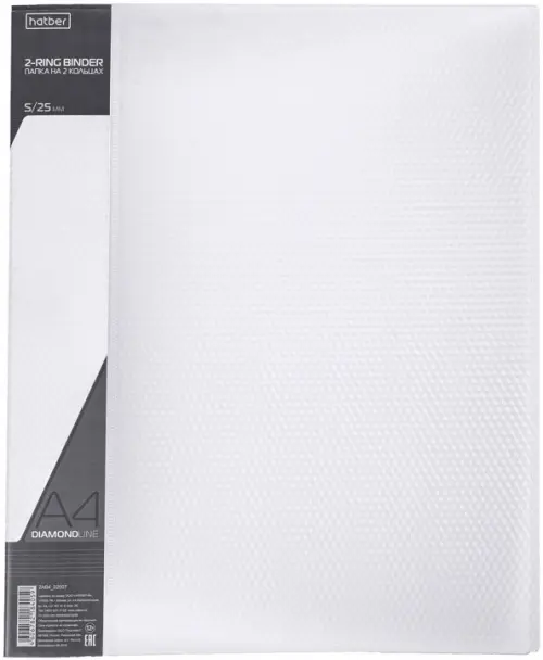 Папка пластиковая на 2-х кольцах "DIAMOND белая" (А4, корешок 25 мм) (2AB4_02031)