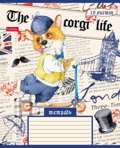 Тетрадь Корги_LIFE, А5, 18 листов, клетка, в ассортименте