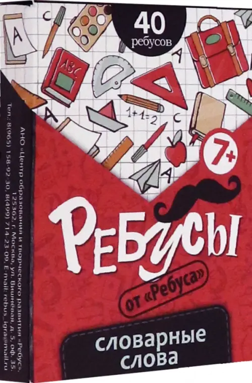 В комплекте: 20 карточек с ребусами, правила разгадывания ребусов, ответы.