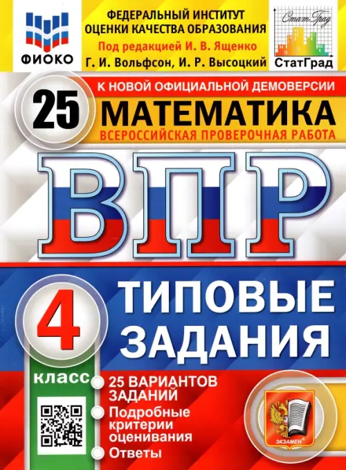 Если вы обнаружили ошибку в описании товара «ВПР ФИОКО. Математика. 4 класс. Типовые задания. 25 вариантов. ФГОС» (авторы: Ященко Иван Валериевич, Высоцкий Иван Ростиславович, Вольфсон Георгий Игоревич), то выделите её мышкой и нажмите Ctrl+Enter. Спасибо, что помогаете нам стать лучше!