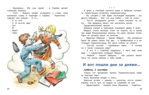 Первый раз в первый класс! Это важное событие мы запоминаем на всю жизнь. И хотя современные школьницы уже не носят коричневую форму и давно не пишут перьевыми ручками, волнения, заботы и приключения первоклассницы Маруси придутся юным читателям по душе. Ну, а бабушки с грустной улыбкой вспомнят свое детство и замечательный фильм "Первоклассница", на котором выросло не одно поколение младших школьников. Для младшего школьного возраста.