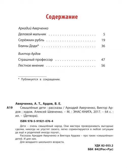 Если вы обнаружили ошибку в описании товара «Смышленые дети» (авторы: Аверченко Аркадий Тимофеевич, Ардов Виктор Ефимович), то выделите её мышкой и нажмите Ctrl+Enter. Спасибо, что помогаете нам стать лучше!