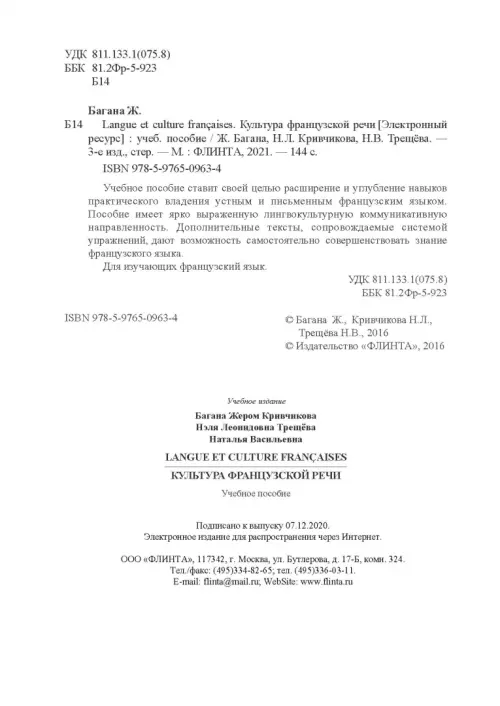 Если вы обнаружили ошибку в описании товара «Langue et culture francaises. Культура французской речи. Учебное пособие» (авторы: Кривчикова Нэля Леонидовна, Трещева Наталья Васильевна, Багана Жером), то выделите её мышкой и нажмите Ctrl+Enter. Спасибо, что помогаете нам стать лучше!
