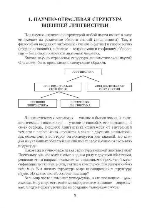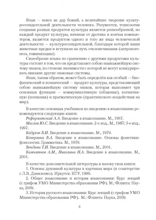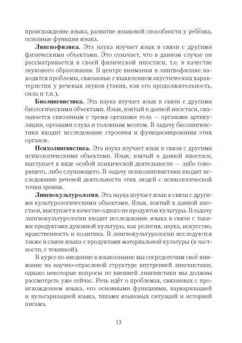 Курс лекций соответствует стандартной программе курса "Введение в языкознание". Он содержит основные сведения о языке, его функциях, истории его изучения. В курсе представлена отчетливая научно-отраслевая структура языкознания. Главное внимание в нем уделено проблемам внутренней лингвистики - синхронической, диахронической и сравнительной. К курсу приложен "Краткий словарь лингвистических терминов". Для бакалавров и студентов, а также для интересующихся вопросами языкознания. 5-е издание, стереотипное.