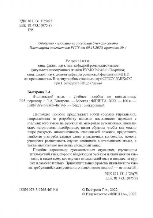 Если вы обнаружили ошибку в описании товара «Итальянский язык. Учебное пособие по письменному переводу» (авторы: Быстрова Татьяна Александровна), то выделите её мышкой и нажмите Ctrl+Enter. Спасибо, что помогаете нам стать лучше!