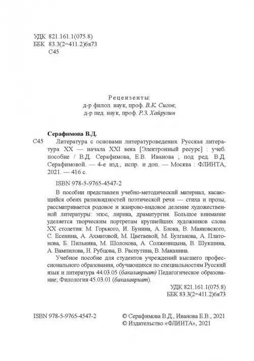 Учебное пособие для студентов учреждений высшего профессионального образования, обучающихся по специальностям Русский язык и литература 44.03.05 (бакалавриат) Педагогическое образование; Филология 45.03.01 (бакалавриат).