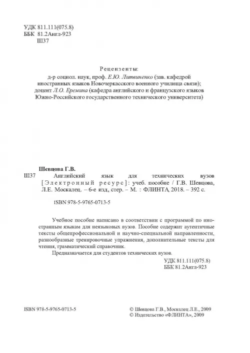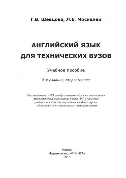 Если вы обнаружили ошибку в описании товара «Английский язык для технических вузов. Учебное пособие» (авторы: Москалец Лариса Евгеньевна, Шевцова Галина Васильевна), то выделите её мышкой и нажмите Ctrl+Enter. Спасибо, что помогаете нам стать лучше!