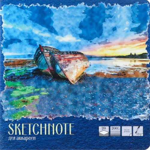 Скетчбук для акварели Лодки у берега, 20 листов