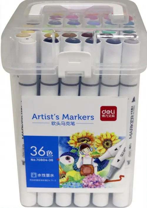 Набор маркеров для скетчинга. Количество в упаковке: 36. Количество цветов: 36. Тип пишущего наконечника: двойной (скошенный, пулевидный). Упаковка: пластиковая коробка. Сделано в Китае.