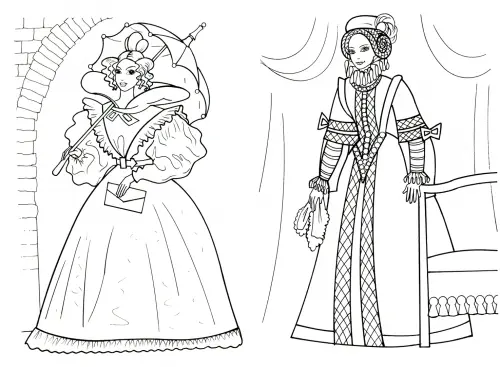 Детская раскраска для девочек на тему "Собираемся на бал".