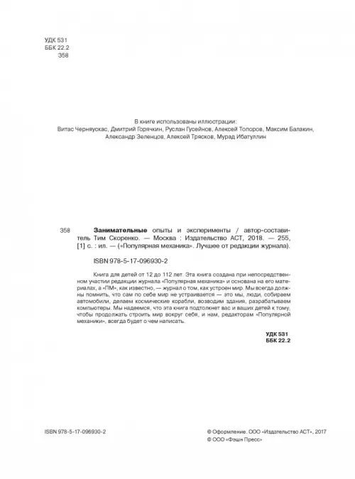 Если вы обнаружили ошибку в описании товара «Популярная механика. Занимательные опыты и эксперименты» (авторы: Скоренко Тим), то выделите её мышкой и нажмите Ctrl+Enter. Спасибо, что помогаете нам стать лучше!