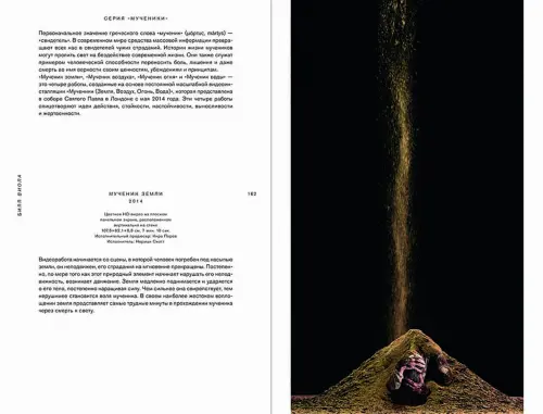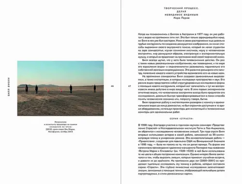 Издание подготовлено к первой в России персональной выставке американского видеохудожника Билла Виолы (2 марта - 30 мая 2021 года, ГМИИ им. А. С. Пушкина). В экспозиции представлены произведения, созданные с 2000 по 2014 год и объединенные темами человеческих страстей и природных стихий. Каталог включает тексты о главных мотивах творчества Виолы и об экспонатах выставки (О. Шишко), о развитии в них понятия "возвышенного" (Р. Арьи), об особенностях производства видеоработ (К. Перов) и об истории их экспонирования в России (А. Джеузы), а также интервью Д. Дж. Ханхарда с самим художником.