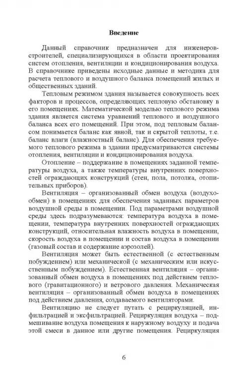 В справочнике представлены материалы, необходимые для расчета теплового и воздушного баланса жилых и общественных зданий. Подробно рассмотрены инженерные методы расчета теплопотерь, теплопоступлений от солнечной радиации, внутренних выделений теплоты и влаги в помещениях. Приведены теплотехнические характеристики современных строительных материалов. Отдельная глава книги посвящена выбору расчетных параметров наружного воздуха, а также параметров микроклимата и воздухообмена в помещениях зданий различного назначения. В справочнике предпринята попытка собрать всю необходимую информацию, рассеянную по значительному количеству нормативных документов, справочных и периодических изданий. Справочник адресован специалистам в области проектирования систем отопления, вентиляции и кондиционирования воздуха. Также он может быть полезен при теплотехнических расчетах ограждающих конструкций зданий.