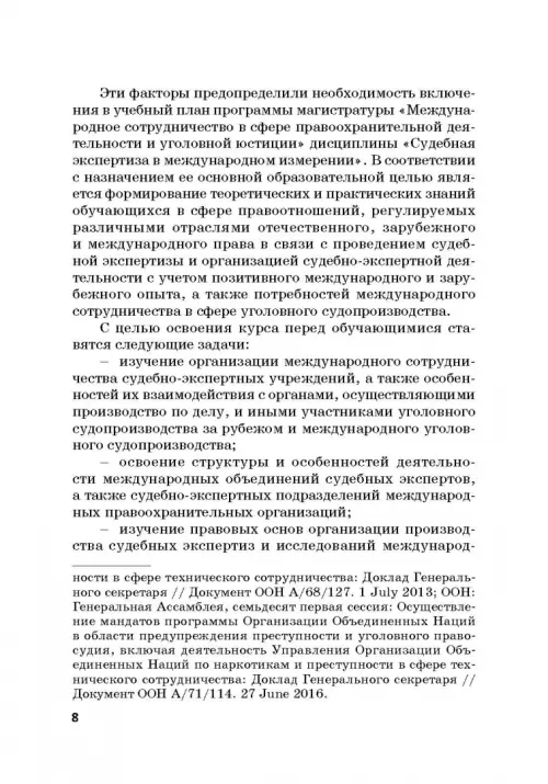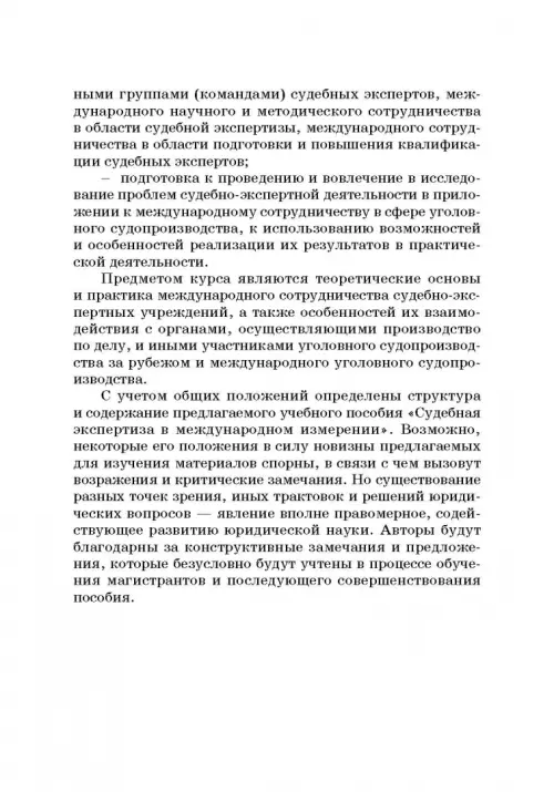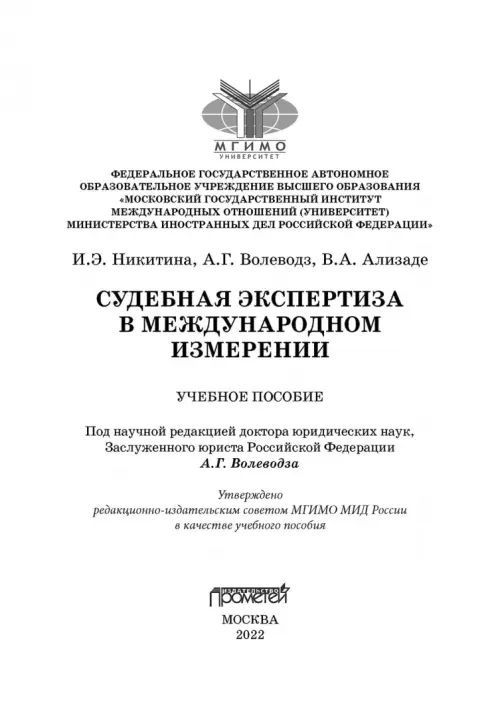 В учебном пособии представлен современный мировой опыт международного сотрудничества по вопросам судебной экспертизы. Раскрыты правовые основы судебно-экспертной деятельности на национальном уровне ведущих государств мира и в рамках международных организаций и межправительственных объединений, дана информация о правовой регламентации судебно-экспертной деятельности в формате прогрессивного развития международного права и его институтов. Представлен международно-правовой режим судебно-экспертной деятельности в целях отправления международного правосудия по уголовным делам. Освещены судебно-экспертные аспекты деятельности под эгидой ООН, Интерпола, Европейского союза, СНГ, а также международных уголовных судов и трибуналов. Пособие будет полезно научным работникам, исследующим данную проблематику, преподавателям юридических вузов (факультетов), аспирантам, адъюнктам, студентам высших учебных заведении?, а также сотрудникам правоохранительных органов при повышении квалификации и профессиональной подготовке. Рекомендовано в качестве основной литературы по дисциплине «Судебная экспертиза в международном измерении», дополнительной литературы по дисциплинам «Криминалистика в международном измерении», «Международное сотрудничество в сфере уголовного судопроизводства», «Международные правоохранительные организации» для студентов МГИМО МИД России, обучающихся по программе магистратуры «Международное сотрудничество в сфере правоохранительной деятельности и уголовной юстиции».