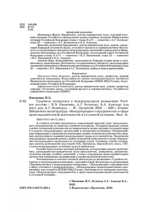 Если вы обнаружили ошибку в описании товара «Судебная экспертиза в международном измерении. Учебное пособие» (авторы: Волеводз Александр Григорьевич, Никитина Ирина Эдуардовна, Ализаде Вера Александровна), то выделите её мышкой и нажмите Ctrl+Enter. Спасибо, что помогаете нам стать лучше!