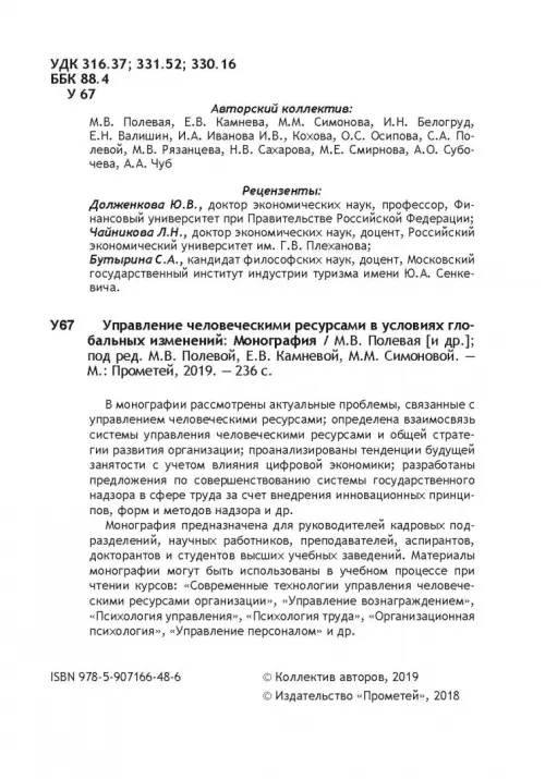 Управление человеческими ресурсами в условиях глобальных изменений. Монография