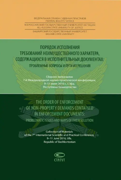 Издание представляет собой сборник докладов, которые были подготовлены известными учеными и практиками из России и иностранных государств для участия в 7-й Международной научно-практической конференции "Порядок исполнения требований неимущественного характера, содержащихся в исполнительных документах: проблемные вопросы и пути их решения" (9-11 июня 2016 г. , г. Уфа, Республика Башкортостан). Для сотрудников Федеральной службы судебных приставов, студентов и аспирантов юридических вузов, практикующих юристов, всех интересующихся вопросами европейского гражданского процесса и исполнительного производства.