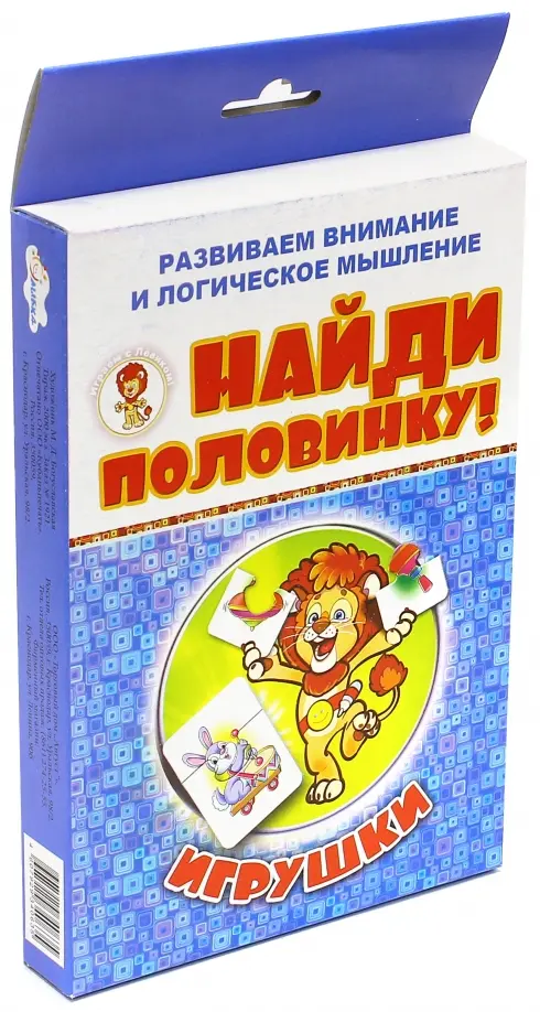 Если вы обнаружили ошибку в описании товара «Найди половинку. Игрушки», то выделите её мышкой и нажмите Ctrl+Enter. Спасибо, что помогаете нам стать лучше!