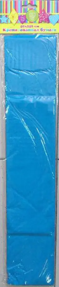 Бумага крепированная. Цвет: светло-синий. Размер: 500х2500 мм. Плотность: 22г/м2. 1 лист. Сделано в Китае.