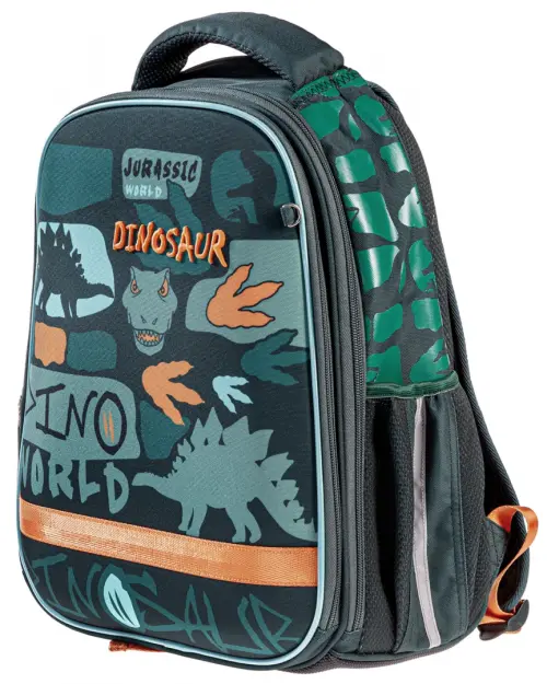Ранец серии Ergonomic light с мягкими боковинами предназначен для детей младшего и среднего школьного возраста. Выполнен из современного пористого EVA материала с покрытием из высококачественного полиэстера. Содержимое такого ранца всегда будет в полном порядке, благодаря надежному корпусу с мягкими боковинами. Анатомическая вентилируемая спинка, лямки, регулируемые по высоте, в зависимости от роста ребенка, уплотненная мягкая ручка и петля для подвешивания делают его удобным. Нагрудная стяжка позволит плотно закрепить рюкзак на спине школьника. Ранец содержит 2 независимых отделения на молнии ? основное - с плавающей перегородкой, и дополнительное с карманом-сеткой и функциональным органайзером , включающим в себя карточку - расписание уроков, два кармана на молнии для мелочей и мобильного телефона, отстегивающийся карабин для ключей . Для удобства на задней спинке предусмотрен потайной карман на молнии для ценных вещей. На боковинах удобные вместительные карманы для бутылки с водой, термоса и других предметов. Дно ранца выполнено из ПВХ и дополнительно оснащено пластиковыми ножками для защиты от загрязнений и влаги. Светоотражающие элементы на лямках, передней и боковой частях ранца обеспечивают безопасность ребенка на дороге. В комплект входит полезный аксессуар для заботы о здоровье школьника - термосумка (18x10x8 см). Благодаря мягкому корпусу термобокса в него помещается полноценный завтрак-перекус для ребенка. Для термосумки предусмотрен специальный карман-сетка в основном отделении рюкзака.