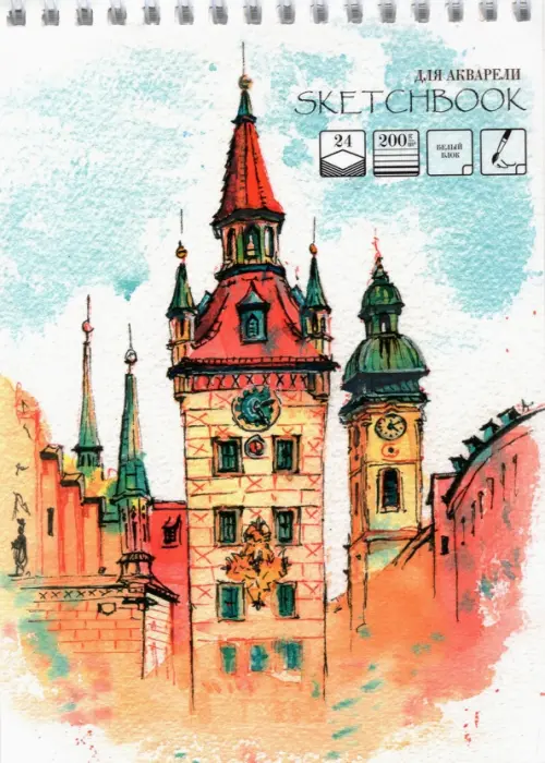 Скетчбук для акварели на гребне Башня в Европе, 24 листа, А5