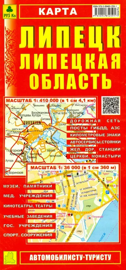 Масштаб карты области: 1:410 000 Масштаб карты города: 1:36 000. Автомобилисту-туристу.