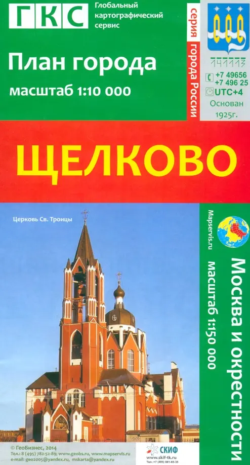 Щелково. План города + карта окрестностей Масштаб 1:10 000 (город), 1:150 000 Формат 70х100 см. 1 лист, складная карта.