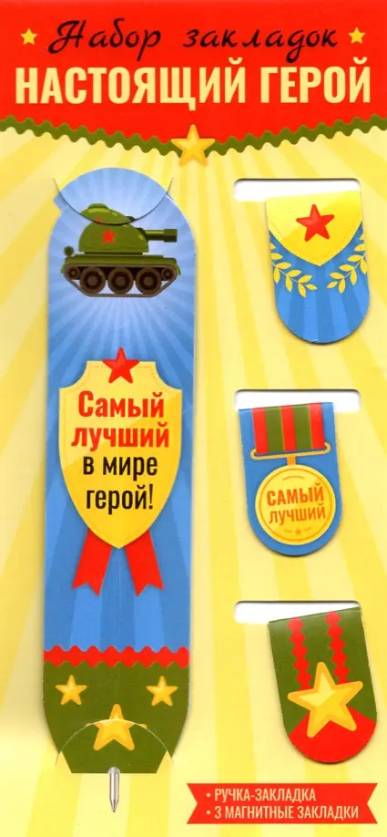 Идеи подарков от СимволикЕсли вы обнаружили ошибку в описании товара «Набор магнитных закладок. Настоящий герой», то выделите её мышкой и нажмите Ctrl+Enter. Спасибо, что помогаете нам стать лучше!