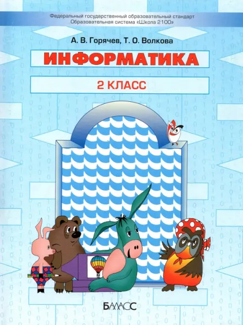 Учебник «Информатика» (авторы А.В. Горячев, Т.О Волкова) предназначен для учащихся 2 класса общеобразовательных организаций. Соответствует Федеральному государственному образовательному стандарту начального общего образования. Является составной частью комплекта учебников развивающей Образовательной системы «Школа 2100». Для проведения занятий компьютеры не требуются. В качестве рабочей тетради к учебнику используется учебное пособие «Информатика в играх и задачах». Курс может быть дополнен серией справочников-практикумов, которые помогут школьникам освоить отдельные компьютерные программы.