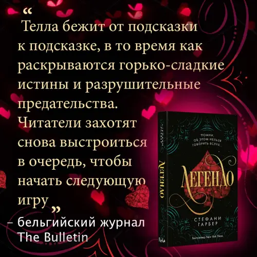 Cердце, что вот-вот разобьется. Долг, что нужно вернуть. Игра, в которой нельзя проиграть. Попав в волшебный мир Караваля, Донателла, наконец, смогла оставить жестокого отца и избавить свою сестру Скарлетт от нежеланного жениха. Казалось бы, все встало на свои места. Но Телла по-прежнему в ловушке: девушка связана роковым соглашением. Таинственный незнакомец требует добыть для него то, что никому еще не удавалось выяснить: настоящее имя магистра Легендо. Единственный способ сделать это — выиграть в Каравале, игре, меняющей судьбу. Телла еще не знает, что встала на опасный путь, где ее ждет бесконечная паутина новых секретов… Ведь Караваль всегда требовал от участников смелости, хитрости и жертв. Но теперь и этого мало. Если девушке не удастся раздобыть имя магистра, она потеряет всё, даже свою жизнь. Но если она раскроет тайну, что станет с Каравалем и самим Легендо? И вновь добро пожаловать в КАРАВАЛЬ! Игра только началась… Стефани Гарбер — топ-автор бестселлеров New York Times с мировым успехом! Ее книги переведены более чем на 30 языков! Стефани — фанат Диснейленда, для нее это единственное место на Земле, где фантастические явления становятся реальностью. Истории писательницы нельзя пропустить — уникальное сочетание магии и таинственного сеттинга. Потрясающее мрачно-завораживающее фэнтези. Продолжение культовой историй о Каравале — мире грез и иллюзий, воплотившихся в реальность. В этой книге главной героиней выступает сестра Скарлетт, Телла, которой предстоит сделать невыполнимое: узнать настоящее имя самого магистра Караваля! Девушке придется вновь пробраться на шоу и выяснить еще больше тайн… Но кто знает, сможет ли Телла принять правду, когда она ей откроется? Трилогия о Каравале вошла в ТОП-10 лучших историй YA. Впервые выходит в оригинальных обложках! Уникальная история о двух сестрах, которые были втянуты в опасную интригу легендарной игры. Риск, магия, любовь на грани безумия! Первая книга стала настоящим хитом: №1 по версии книжного портала IndieNext Pick, лучшая YA книга 2017 года по версии Entertainment Weekly, Teen Vogue, BuzzFeed, Barnes & Noble. Серия побила рекорды по количеству отзывов: более 10 тыс. отзывов на Amazon.com и полмиллиона оценок на Goodreads.com! Магия, коварство, ложь, риск. Караваль реагирует на твои эмоции. Не теряй самоконтроль, иначе погибнешь! Будь осторожен. Ничего не принимай на веру!