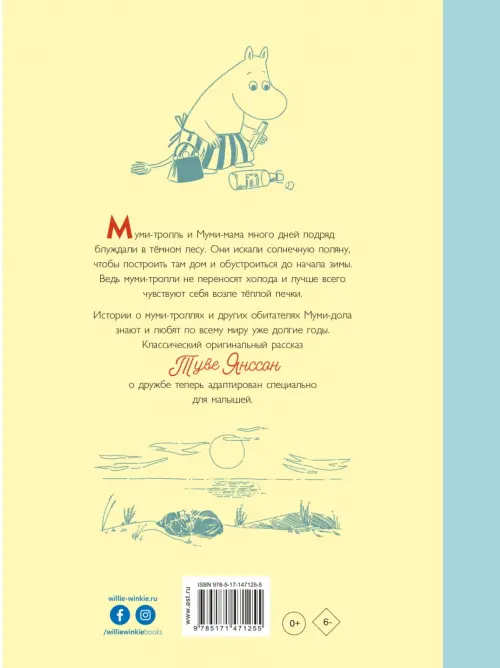 Дождь лил уже несколько дней. Муми-тролль и Муми-мама блуждали в тёмном лесу в поисках подходящей поляны, чтобы построить дом и устроиться до начала зимы. И, конечно же, они надеялись повстречать где-нибудь в чаще Муми-папу... Истории о муми-троллях и других обитателях Муми-дола знают и любят по всему миру уже долгие годы. Классический оригинальный рассказ Туве Янссон о дружбе теперь адаптирован специально для малышей. История "Муми-тролли и дорога в Муми-дол" выходит теперь отдельным изданием. Ранее она издавалась в составе сборника "Муми-тролли и новые истории Муми-дола".