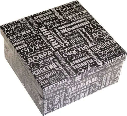 Одинарная квадратная коробка "Пожелания". Артикул: НПК-7474. Размеры: 14х14х7 см. Материал: картон. Сделано в России.
