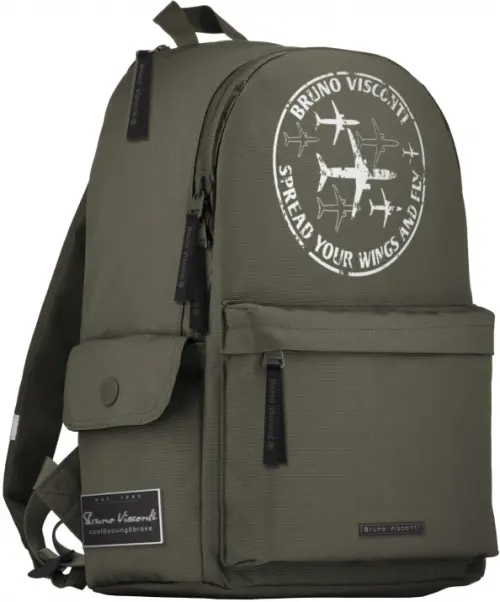 Рюкзак с авторским дизайном, с использованием сложнейших современных технологий нанесения на ткань. Ткань водонепроницаемая, морозостойкая, с повышенной износостойкостью, грязеотталкивающая. Водонепроницаемые двунаправленные-реверсивные надежные 10-мм молнии с 5-см пуллером на замках, что позволяет легко открывать и закрывать рюкзак. Мягкая, комфортная спинка выполнена также из водонепроницаемой ткани. Рюкзак снабжен ручкой-петлей. Регулируемые лямки прямые с усиленным креплением. Износостойкая фирменная подкладка Bruno Visconti, тщательно подобранная и сочетающаяся с дизайном и цветом рюкзака. Рюкзак имеет основное отделение, один фронтальный карман на молнии, два боковых с клапаном на кнопке, верхний карман на молнии для мелочей. Основное отделение снабжено карманом на молнии и двумя открытыми карманами, также отделение дополнено карманом на молнии для карточки.