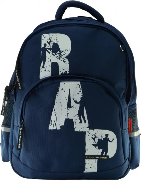 Рюкзак с авторским дизайном, с использованием сложнейших современных технологий нанесения на ткань. Ткань водонепроницаемая, морозостойкая, с повышенной износостойкостью, грязеотталкивающая. Двунаправленные-реверсивные надежные 8 мм молнии с 5 см пуллером на замках, что позволяет легко открывать и закрывать рюкзак. Регулируемые лямки анатомической формы и ручка с усиленным креплением готовы к любым нагрузкам. Износостойкая фирменная подкладка Bruno Visconti, тщательно подобранная и сочетающаяся с дизайном и цветом рюкзака. Рюкзак имеет два основных отделения и большой фронтальный карман на молнии, а также два боковых кармана на резинке. Одно отделение содержит органайзер с молнией, боковой карман и карман на молнии, а также дополнено карманом на молнии для карточки. Рюкзак снабжён четырьмя светоотражающими элементами. Усиленное дно рюкзака оснащено резиновыми ножками, защищающими от загрязнения и влаги.