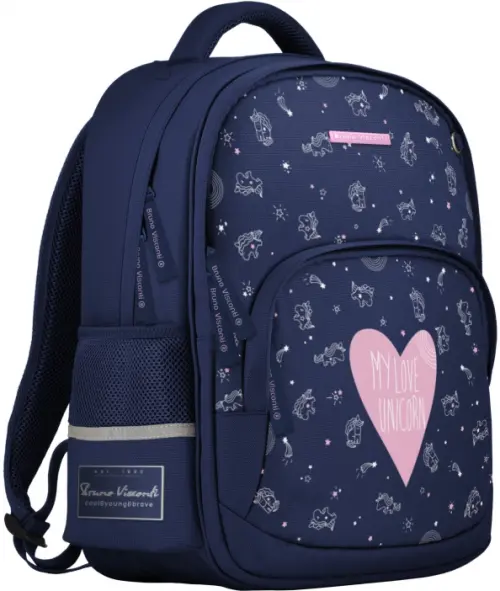 Рюкзак с авторским дизайном, с использованием сложнейших современных технологий нанесения на ткань. Ткань водонепроницаемая, морозостойкая, с повышенной износостойкостью, грязеотталкивающая плотностью 900 DEN. Двунаправленные-реверсивные надежные 8-мм молнии с 5-см пуллером на замках, позволяют легко открывать и закрывать рюкзак. Износостойкая фирменная подкладка Bruno Visconti, тщательно подобранная и сочетающаяся с дизайном и цветом рюкзака. Эта модель отлично подойдет активным школьникам. Множество карманов позволяют хранить в порядке содержимое рюкзака. Красивая отделка и принт определенно понравится юным модникам и модницам, а износостойкость порадует экономных мам. Помимо школьных занятий, модель Junior можно брать с собой в поездки и на прогулку.