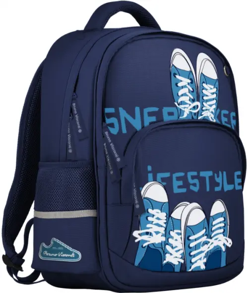 Рюкзак с авторским дизайном, с использованием сложнейших современных технологий нанесения на ткань. Ткань водонепроницаемая, морозостойкая, с повышенной износостойкостью, грязеотталкивающая. Двунаправленные-реверсивные надежные 8-мм молнии с 5-см пуллером на замках, что позволяет легко открывать и закрывать рюкзак. Регулируемые лямки анатомической формы и ручка с усиленным креплением готовы к любым нагрузкам. Износостойкая фирменная подкладка Bruno Visconti, тщательно подобранная и сочетающаяся с дизайном и цветом рюкзака. Рюкзак имеет два основных отделения и большой фронтальный карман на молнии, а также два боковых кармана на резинке. Одно отделение содержит органайзер с молнией, боковой карман и карман на молнии, а также дополнено карманом на молнии для карточки. Рюкзак снабжён четырьмя светоотражающими элементами. Усиленное дно рюкзака оснащено резиновыми ножками, защищающими от загрязнения и влаги.