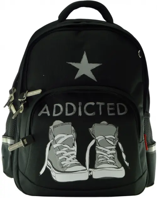 Рюкзак имеет два основных отделения и большой фронтальный карман на молнии, а также два боковых кармана на резинке.
